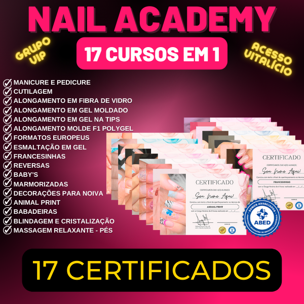 Torne-se Agora uma Nail Designer Completa! São 17 Cursos em 1 na Nail Academy.